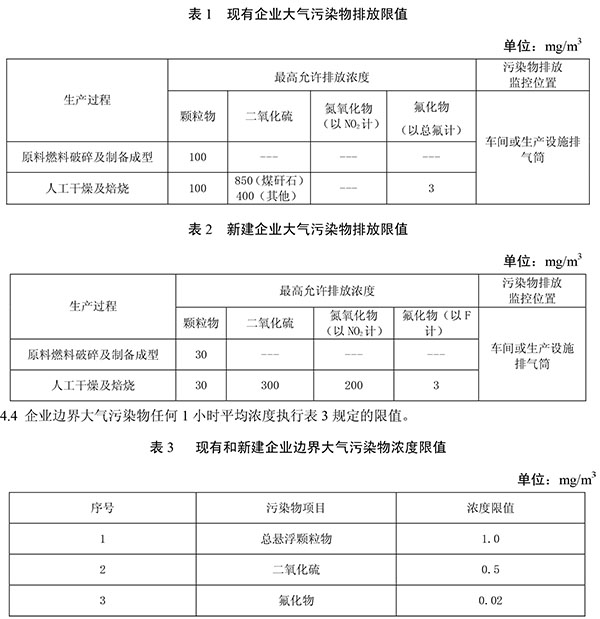 現行磚瓦工業大氣污染物排放標準(GB 29620-2013)